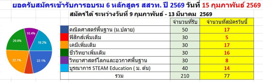 Update ยอดผู้สมัคร 6 หลักสูตร 14/02/69